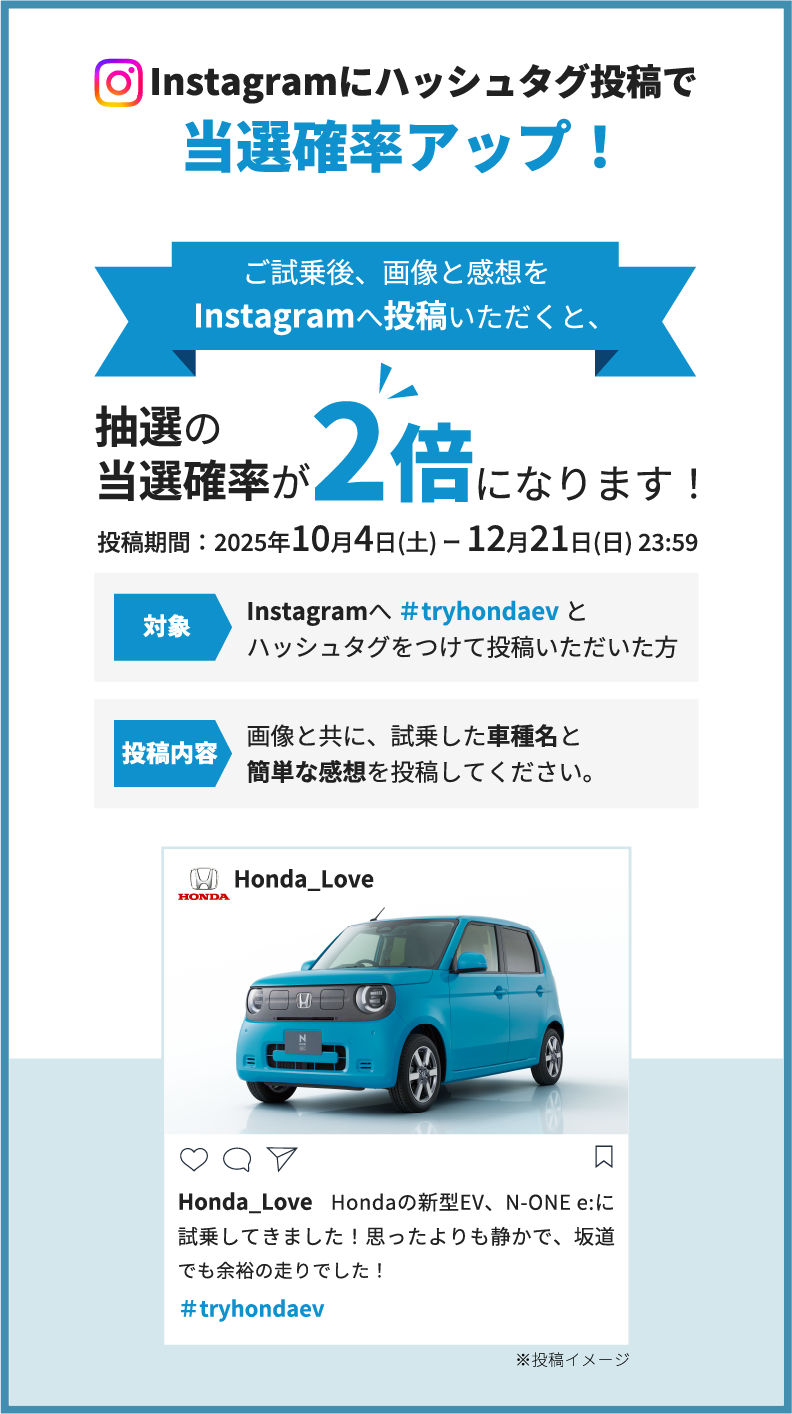 ・全国のHonda正規販売店にてHondaのEV/e:HEV車にご試乗いただき、店頭で本キャンペーンにご応募いただいた方
